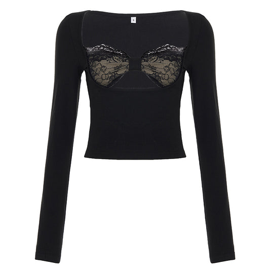 Style: Sexy Fit: Slim Fabric: Polyester Pattern: Solid Element: Lace/Tulle/Fishnet,Cutout Top Length: Short Neckline: V-Neck Sleeve Type: Regular Sleeve Length: Long Sleeve Main Composition: Polyester Season: Spring/Fall F00346418