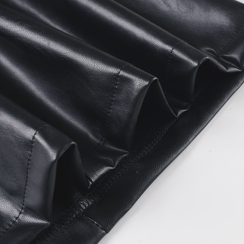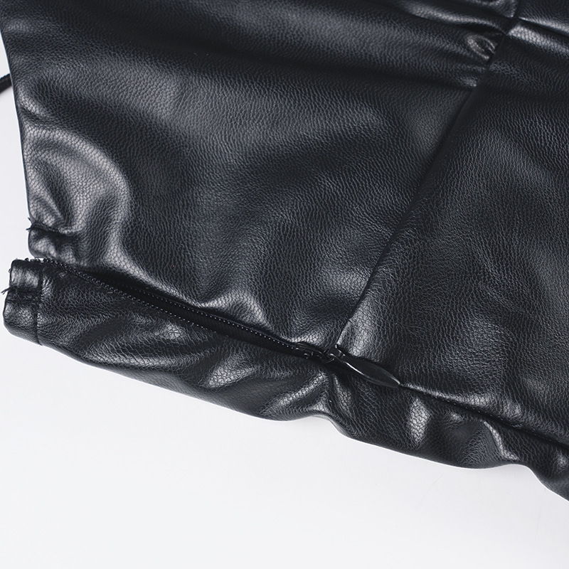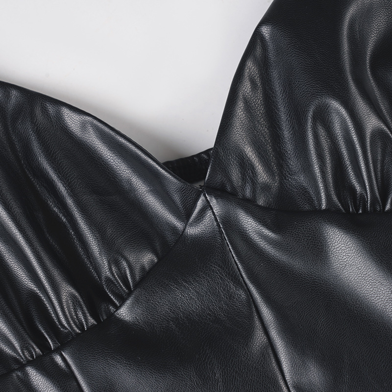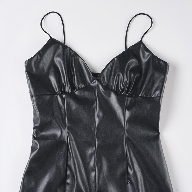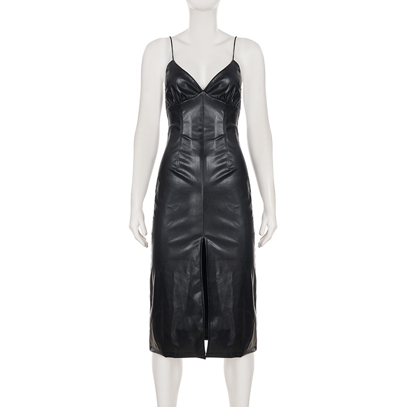 Sexy V neck Vegan Leather Long Fitted Split Dress