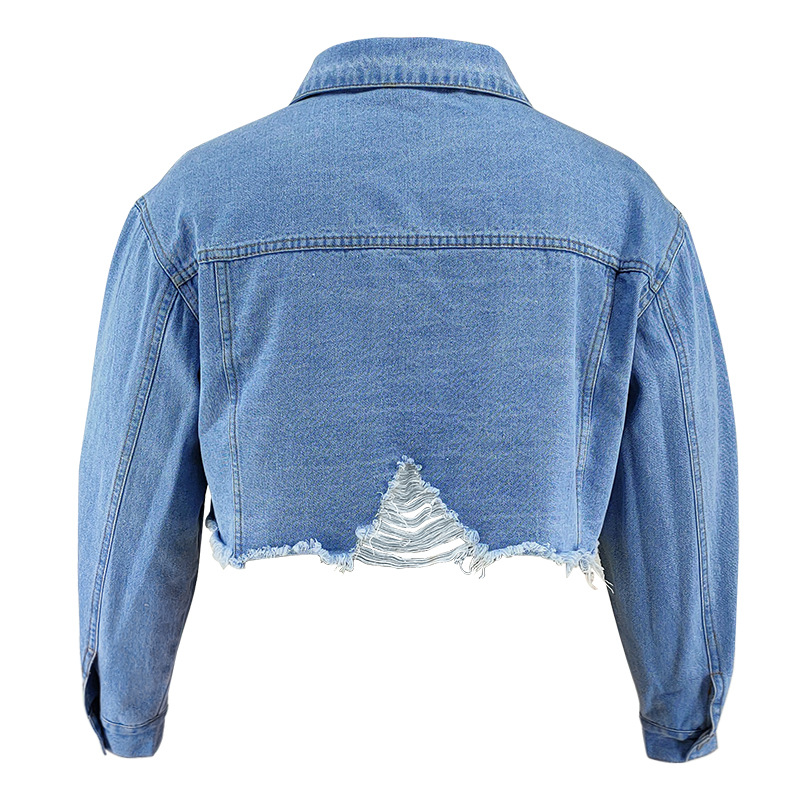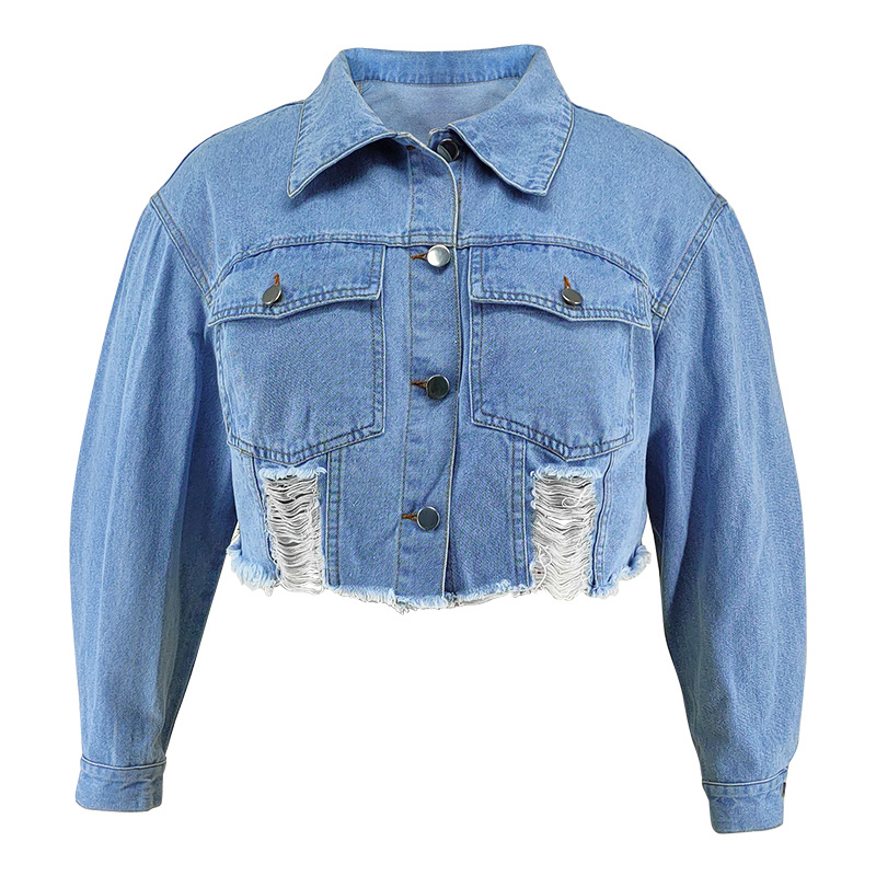 Plus Size Women Clothing Long Sleeve Ripped Denim Jacket