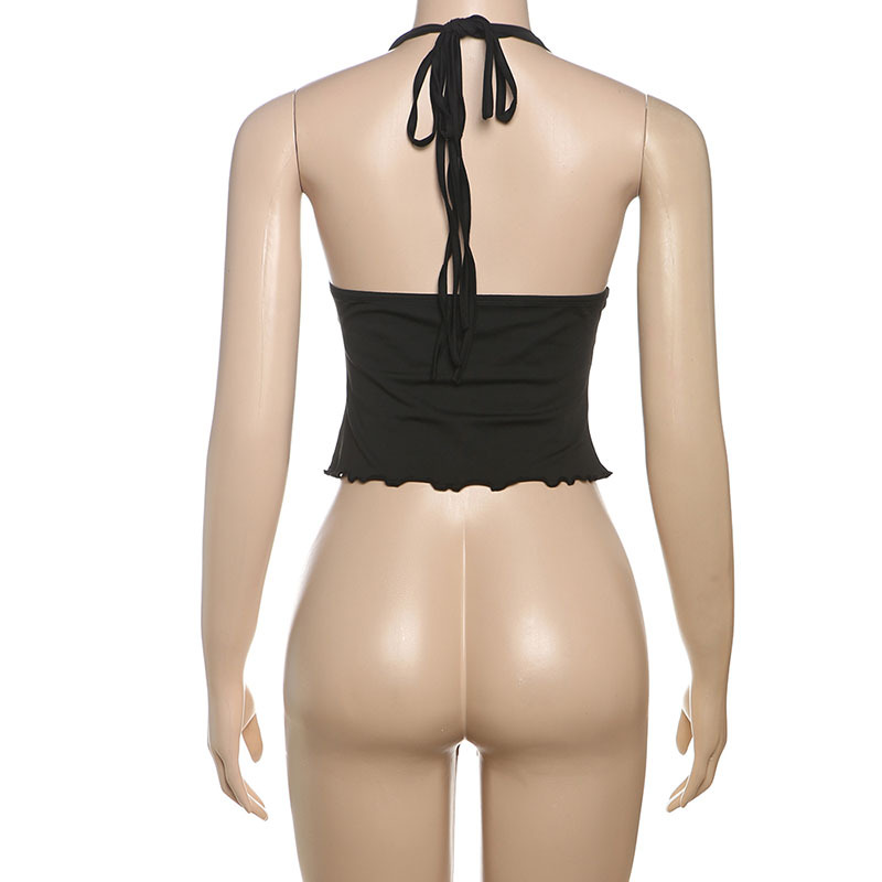 Sexy Lacing Hollow Out Cutout Wooden Ear Halter Cropped Camisole