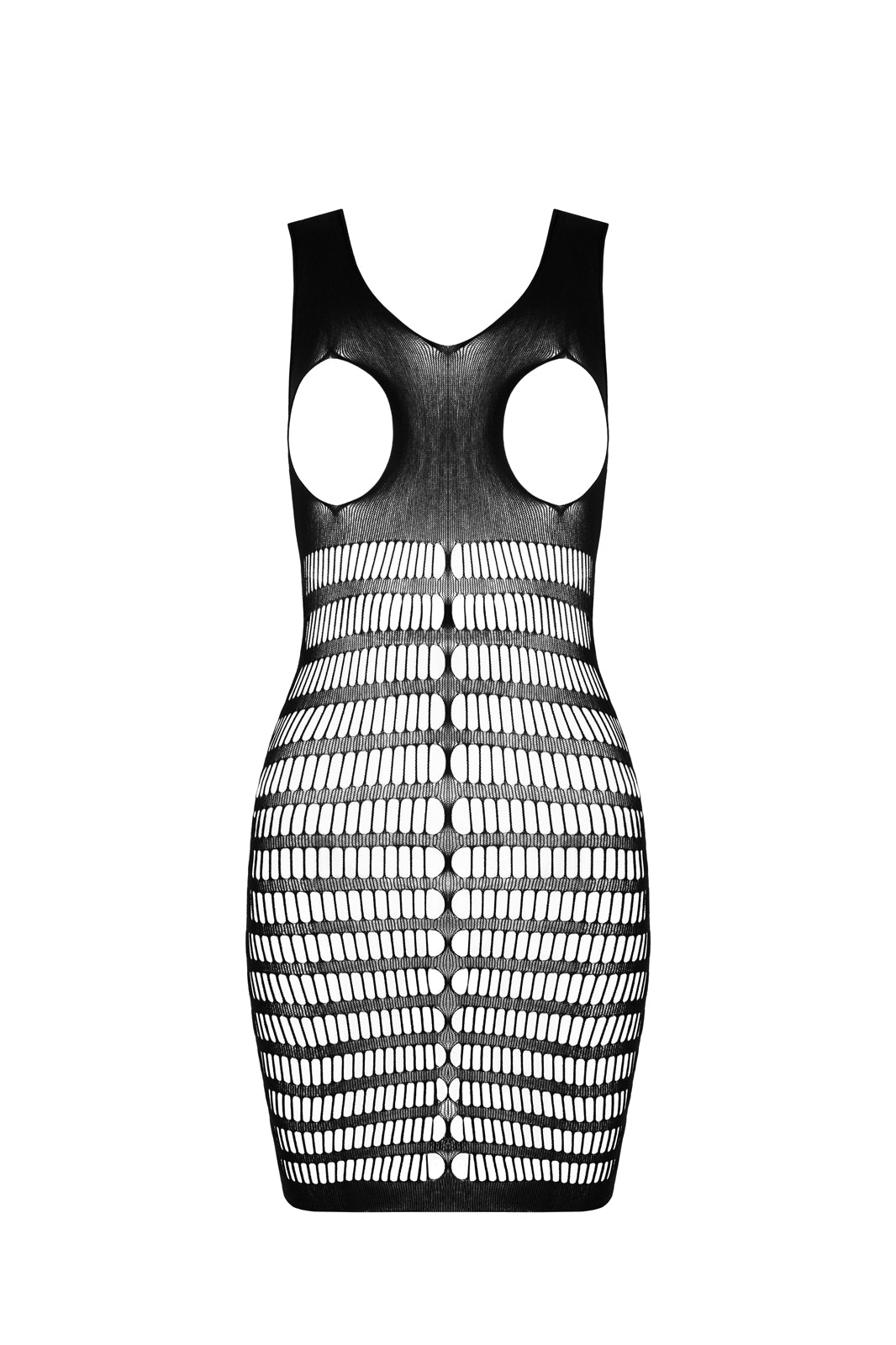 Ladies Black Striped Body Stocking Dress Open at Bust Made In Italy
