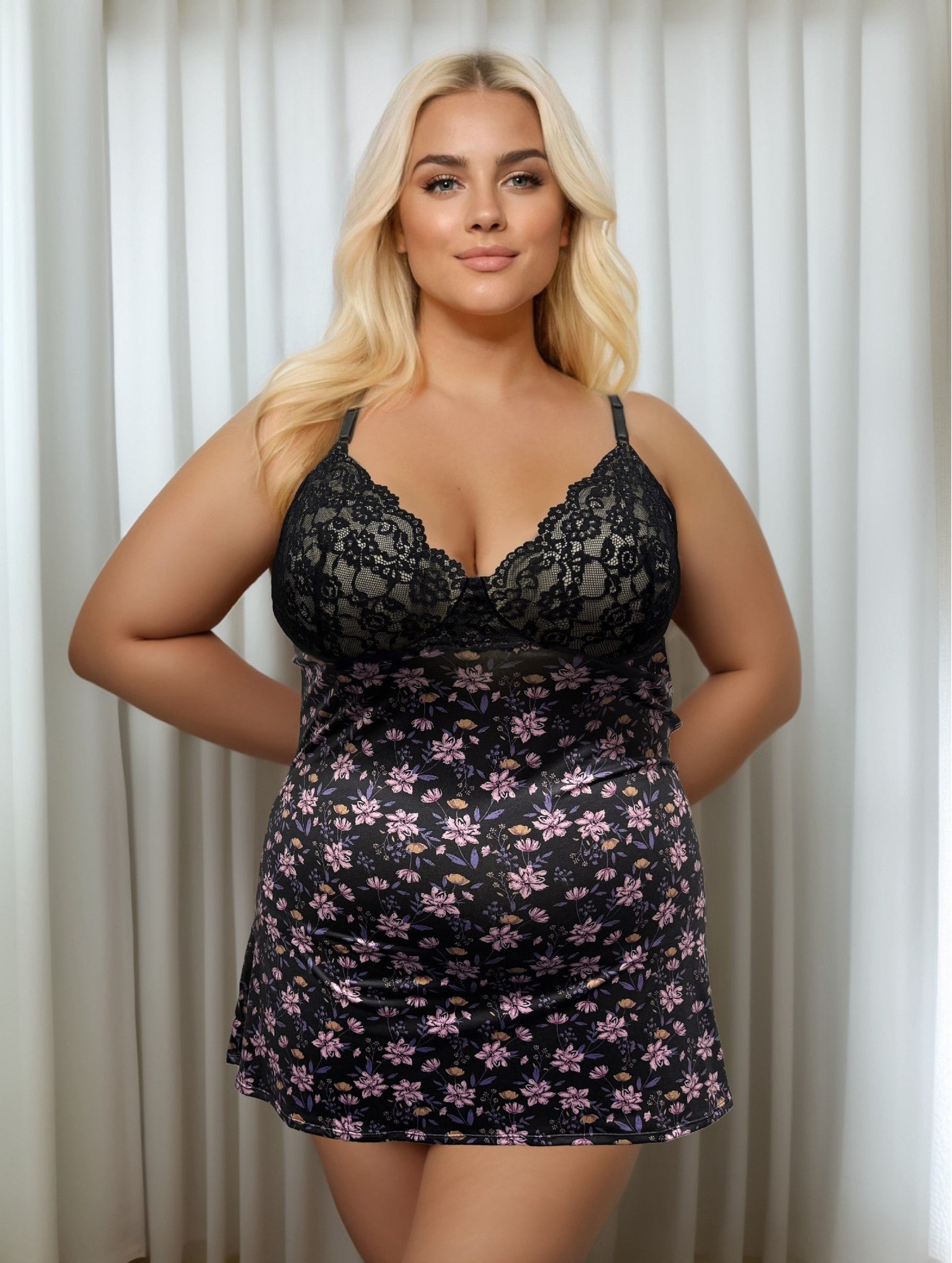 Ladies Printed Chemise with Lace Detail This should be a staple in every woman's loungewear Adjustable Sliders Lace detail at Bust Comes sized Small, Medium, Large, X-Large, 1x/2x available in 6 other different prints