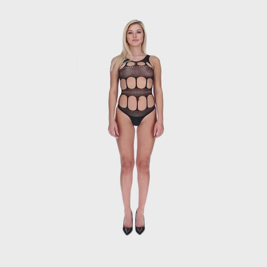 Ladies Sexy Pattern Teddy Open Mesh Bodysuit Crotchless Made In Italy