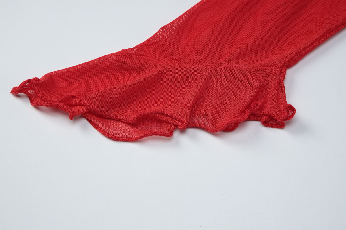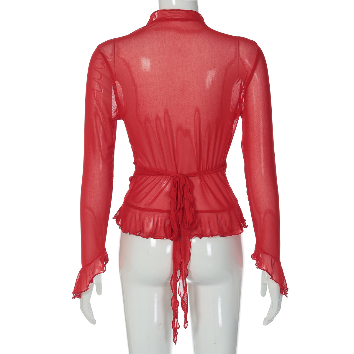 Sexy Low Cut V neck Ruffled Slim Flared Long Sleeve Top