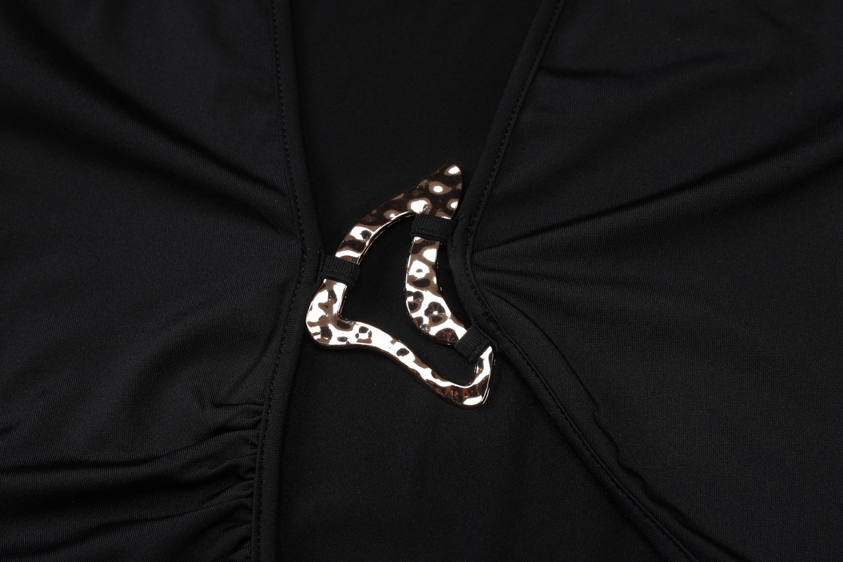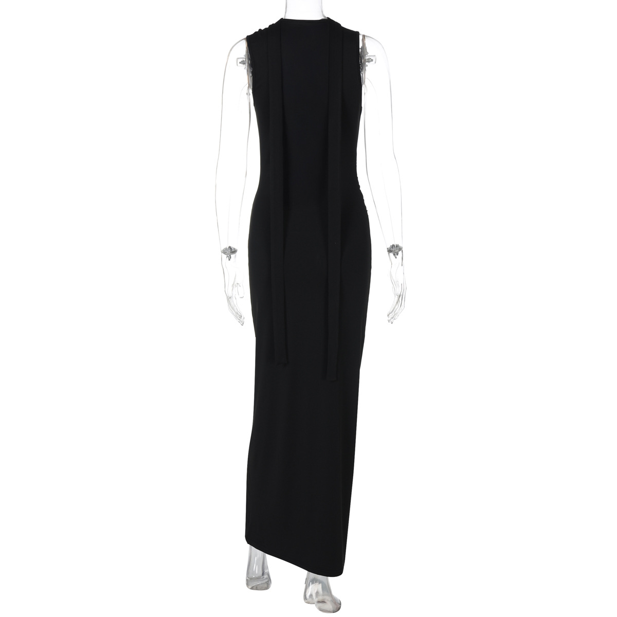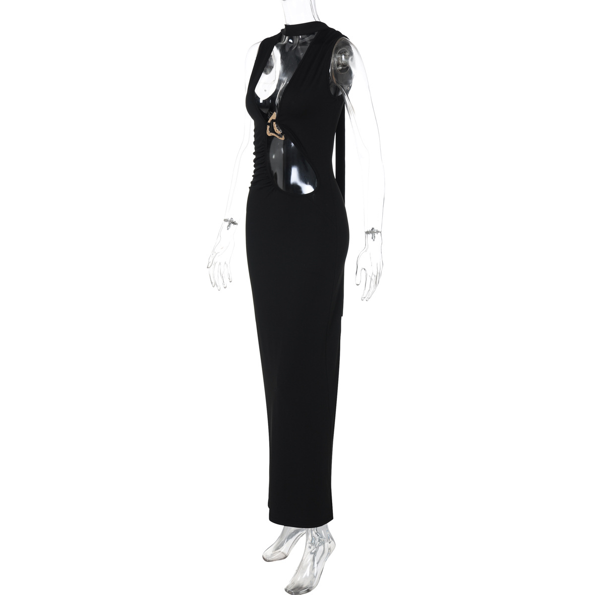 Black Metal Sexy Halter Hollow Out Cutout Maxi Dress Slim Fit Dress