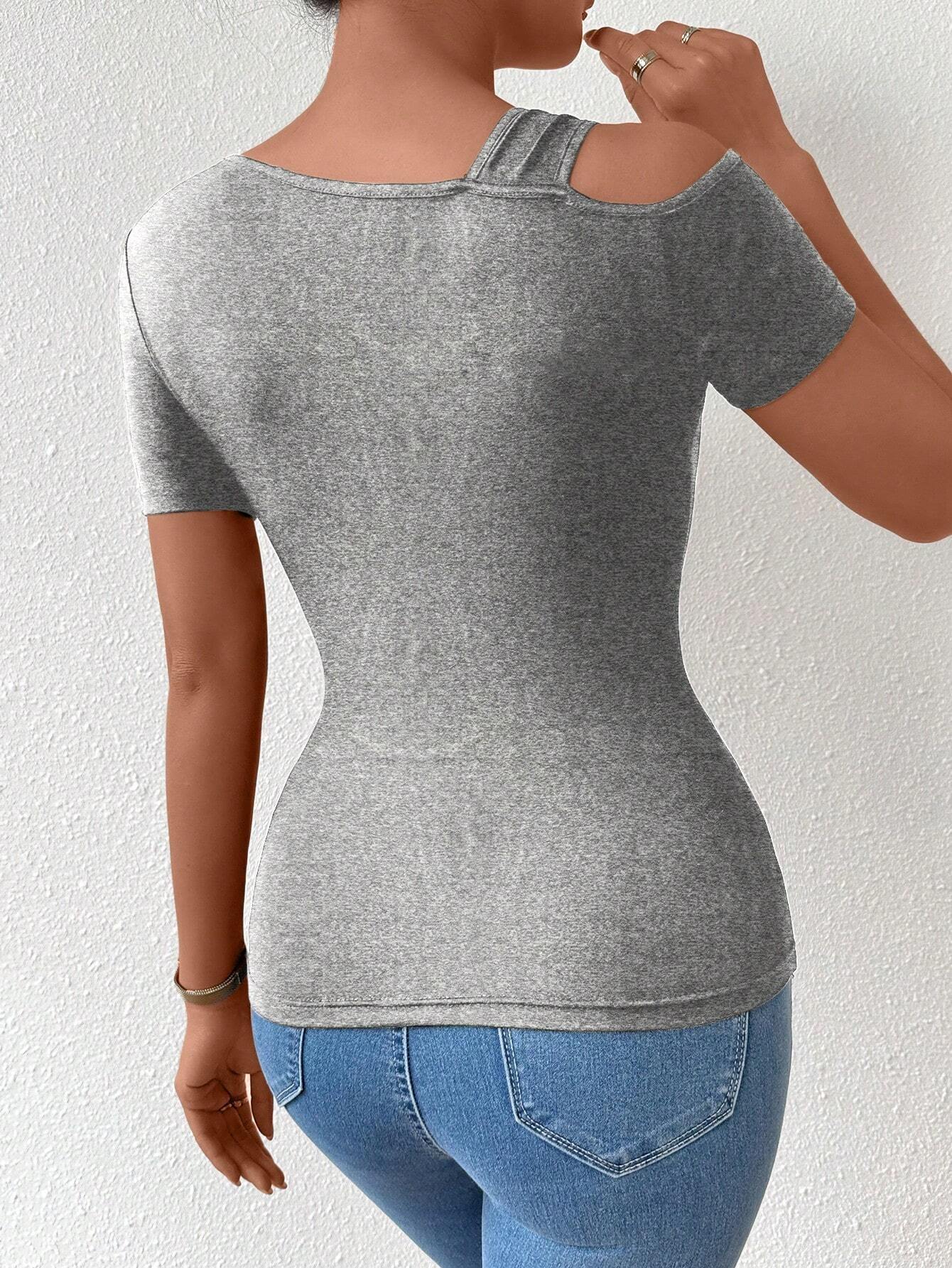 Heather Grey Short Sleeve Twisted Knot Open Shoulder