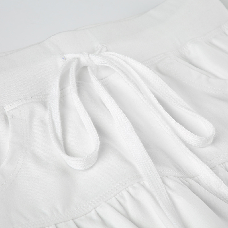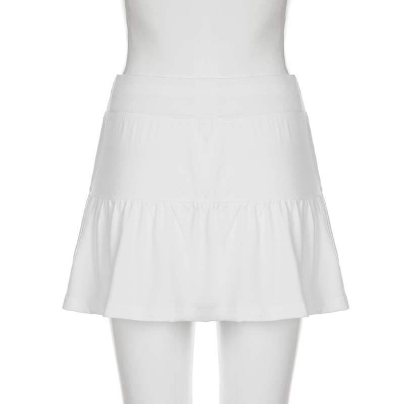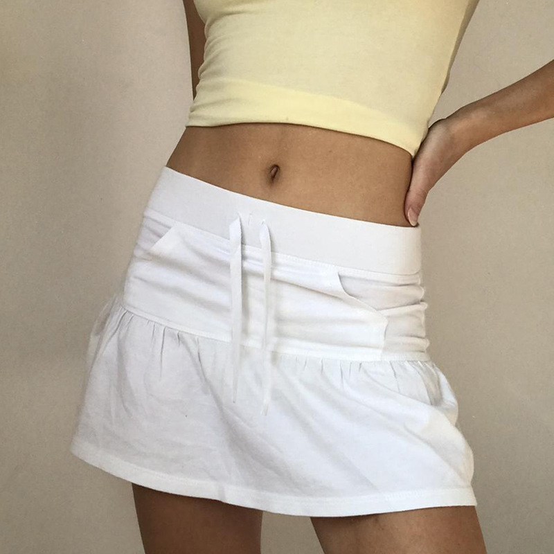 White Drawstring Tight Waist A line Tennis Skirt W/ Kangaroo pocket Y2K