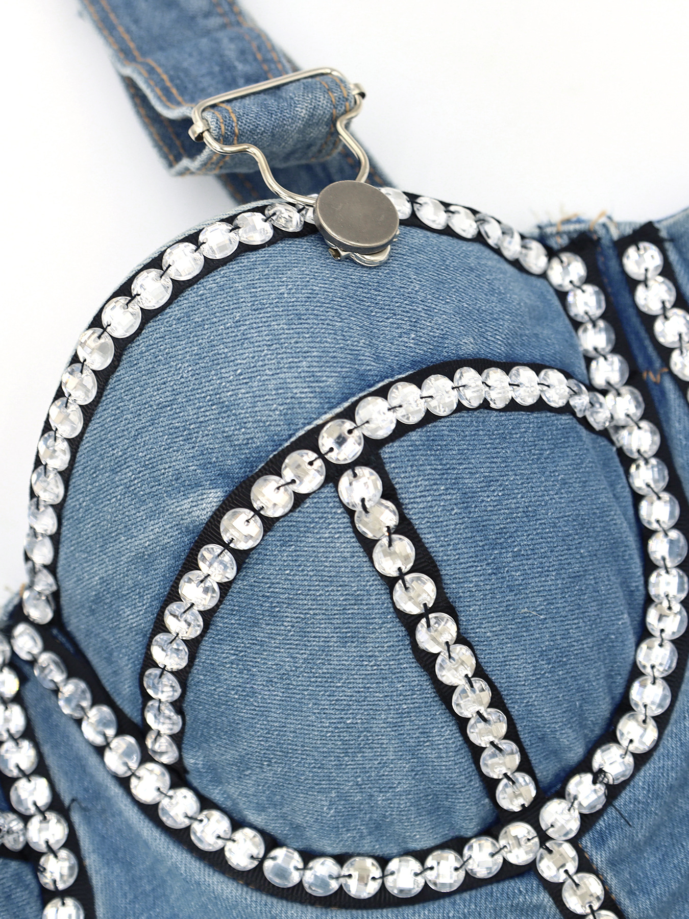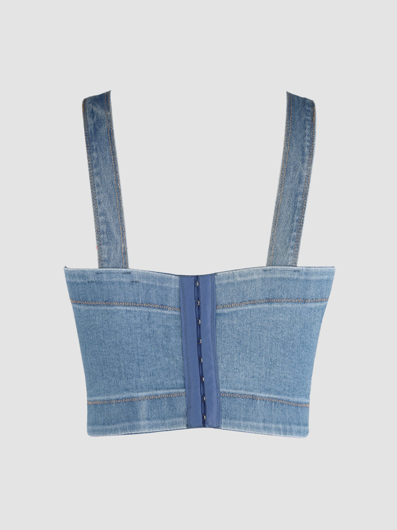 Denim Hand Stitched Diamond Detachable Thick Shoulder Strap Corset