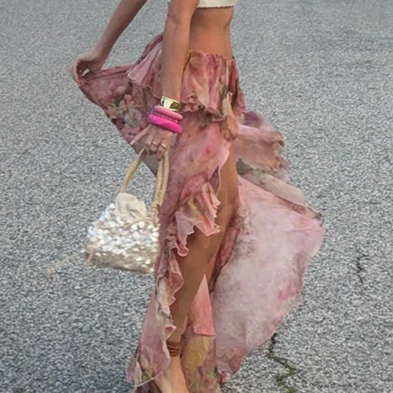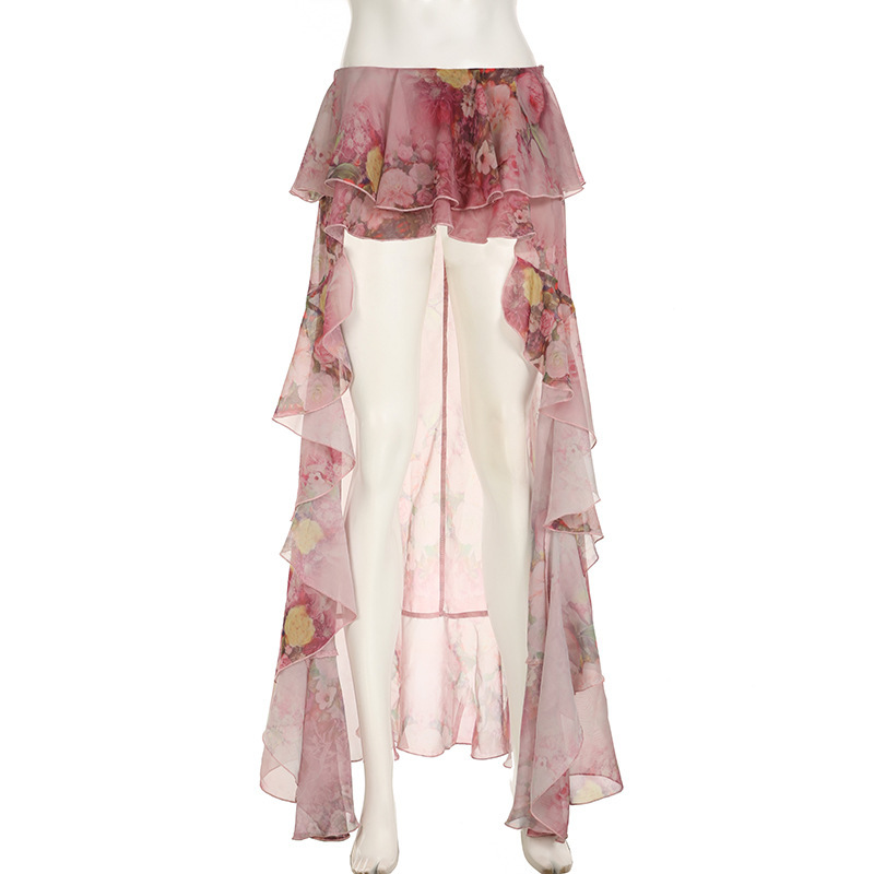 Sexy Floral Print Ruffled High Low Festival , EDC, Stagecoach, Burning Man Skirt