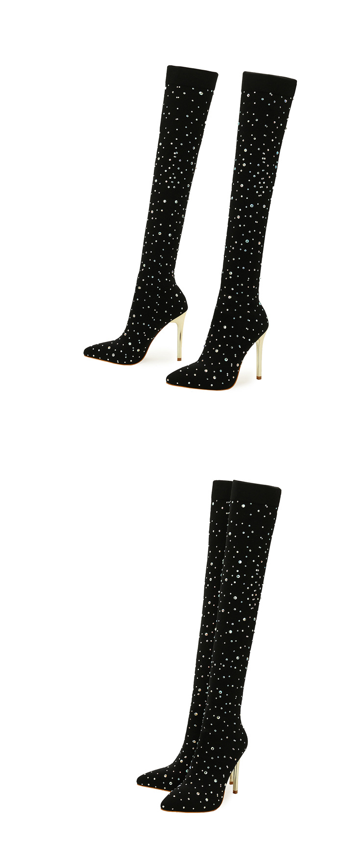 Ladies Rhinestone Cocktail Pointed Stiletto Heel Women High Heel Boots