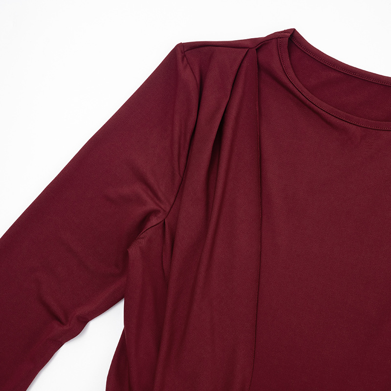 Women Autumn Winter Sexy Figure Flattering Solid Color Long Sleeve Narrow Split Dress
