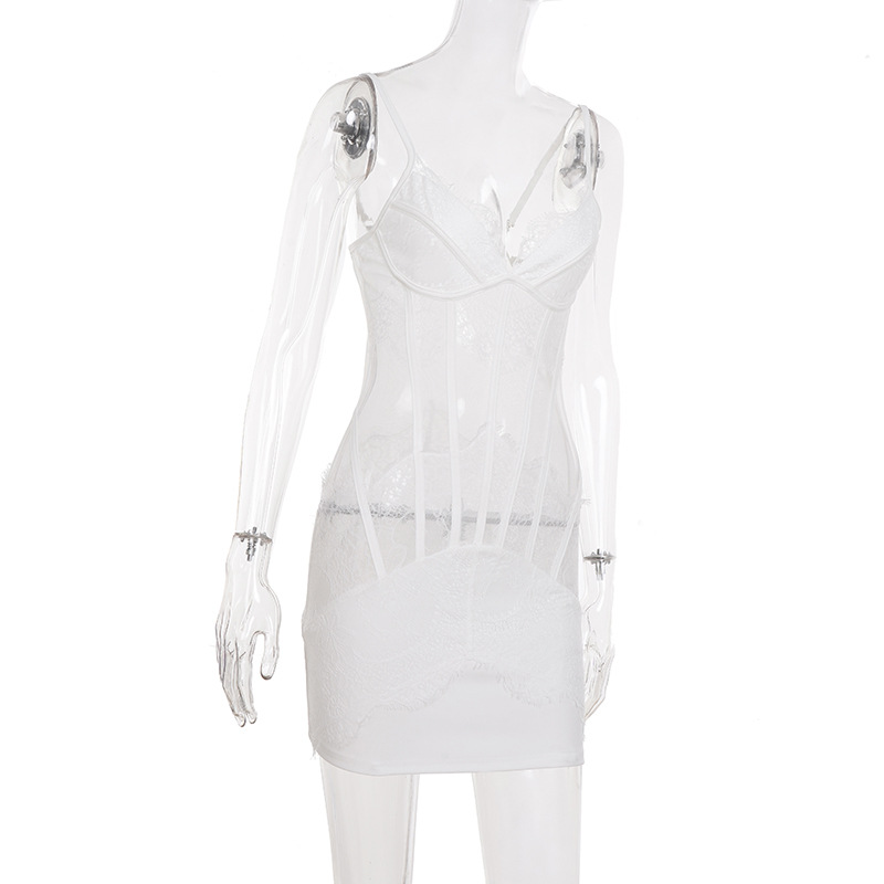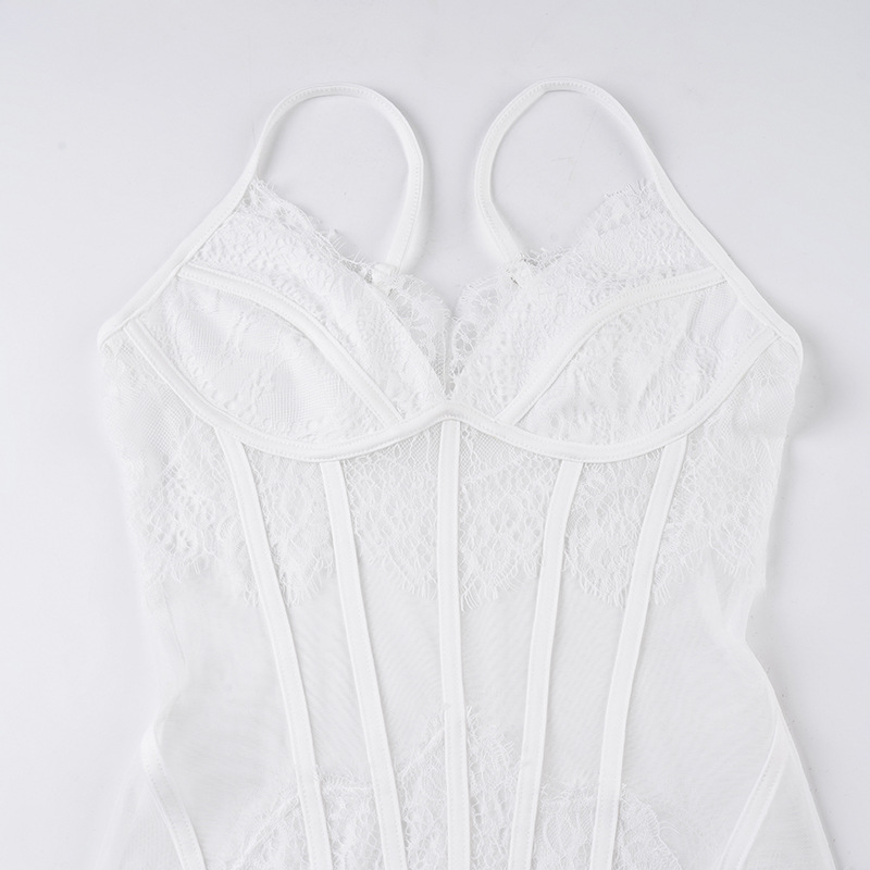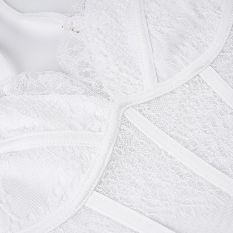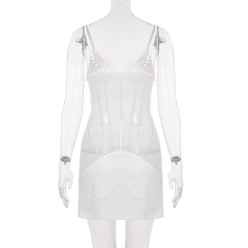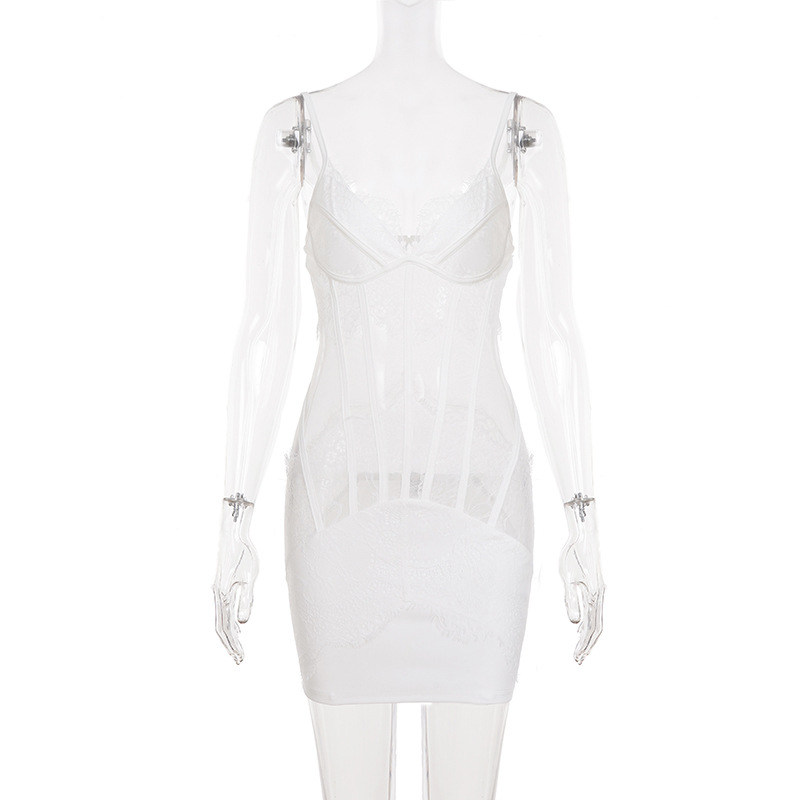 Ladies White Sexy w/ Lace Inserts and faux Boning Corset Dress