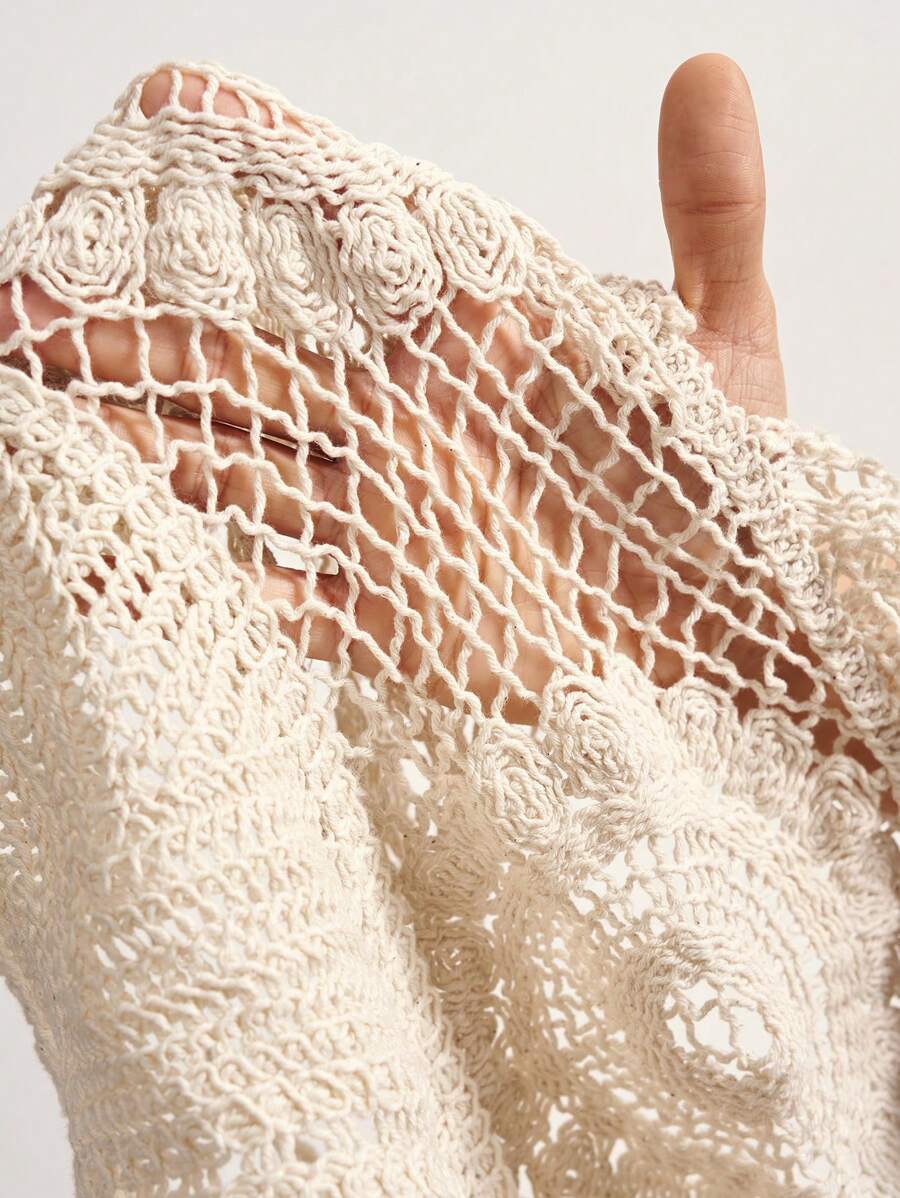 Women Fringed Crochet Lace Up Strappy Top